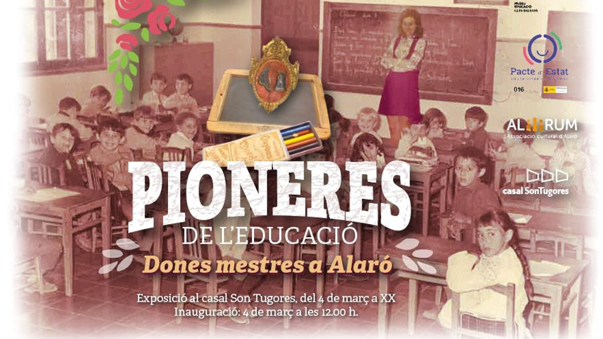 El Centre Cultural de Son Tugores acollirà des d’aquest dissabte a migdia l’exposició ‘Pioneres de l’Educació; Dones mestres a Alaró’. L’organització va a càrrec de l’entitat d’Al Rum, l’Ajuntament l’Alaró i el Casal de Son Tugores i la mostra estarà oberta fins al 15 d’abril.