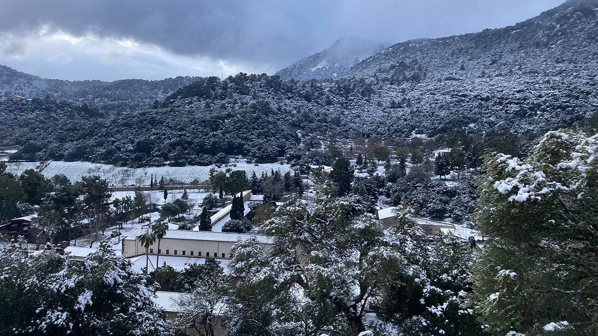 La nevada a la Serra de Tramuntana deixa Lluc incomunicat