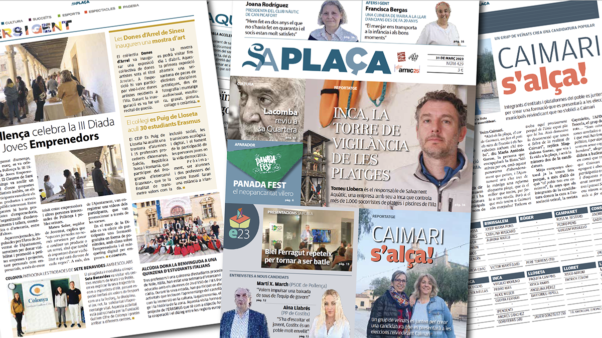 Ja podeu trobar la revista número 429 al carrer. En aquesta nova edició podeu trobar totes les novetats de cara a les eleccions: tots els candidats poble a poble, el perfil i entrevistes a alguns candidats, com Martí March, que es presenta a la batlia de Pollença, i un reportatge sobre Feim Caimari, la nova formació que es presentarà a les eleccions municipals de Selva reivindicant que no s’oblidi a Caimari.