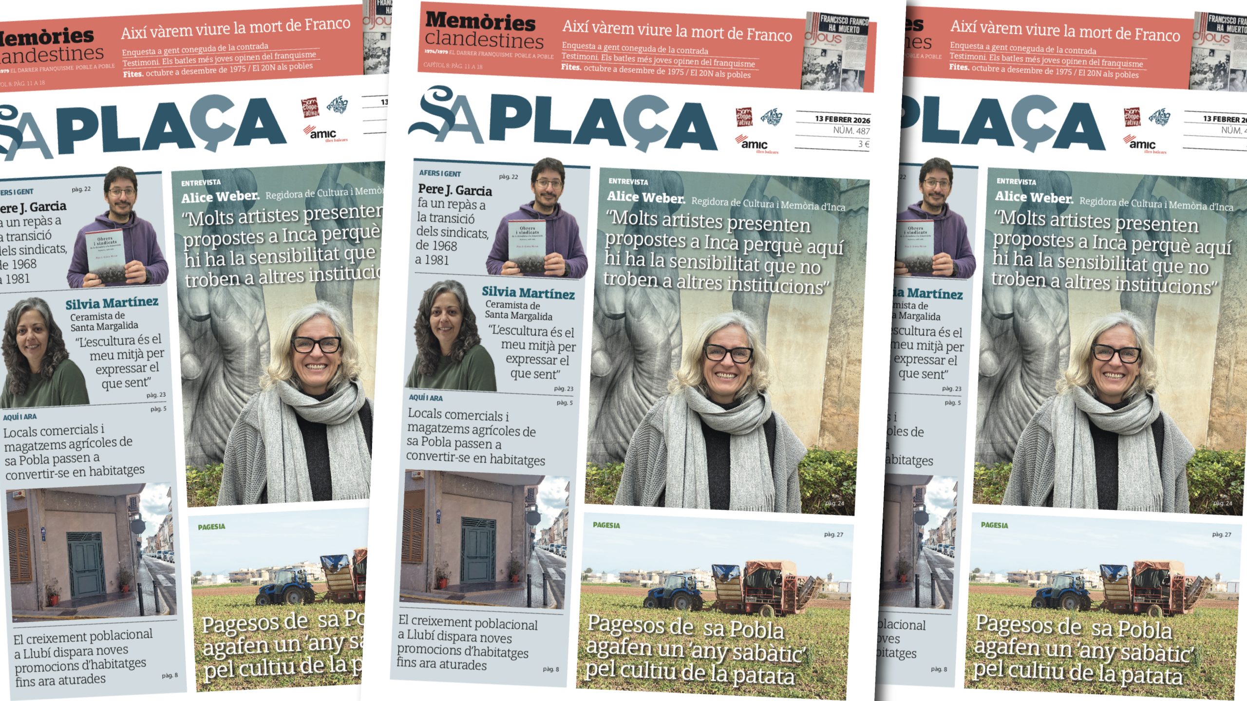 Nova revista Sa Plaça al carrer amb especial atenció al cicle de memòria històrica que s’organitza a Inca amb actes durant tot el mes. Entrevistam a la regidora de Cultura i Memòria Democràtica d’Inca, Alice Weber, que ens parlar del cicle ‘Inca té memòria’, i de l’actual efervescència cultural de la ciutat. Assegura els darrers anys han notat que molts creadors i artistes presenten projectes a Inca cansats de la manca de sensibilitat d’altres institucions. També lamenta que en temes de memòria històrica Inca i Palma hagin deixat d’anar de la mà d’ençà de la batlia de Jaime Martínez, i als actes no hi hagi representació institucional de Ciutat.