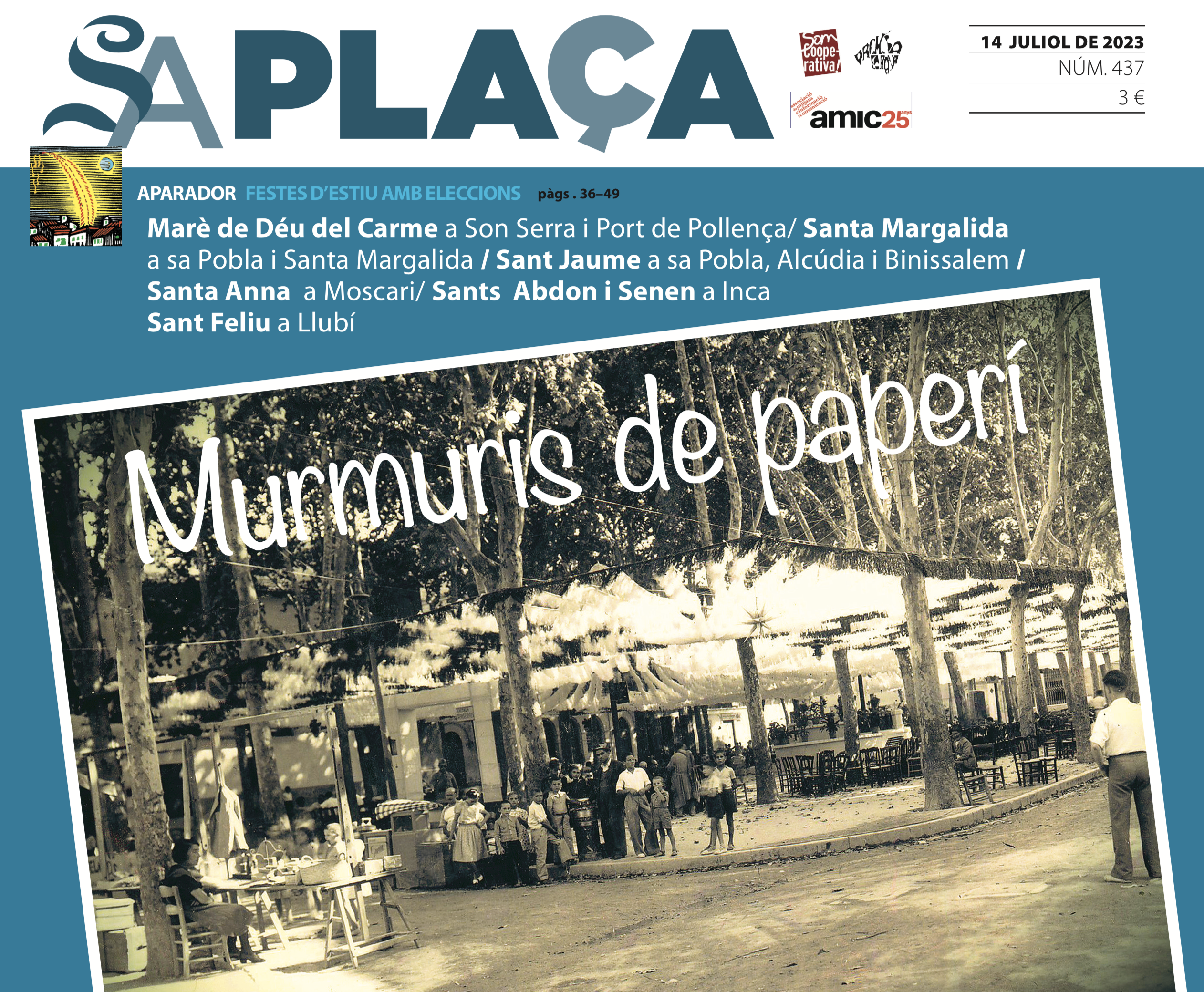 El núm 437 de la revista Sa Plaça ja és a tots els punts de venda habituals amb entrevistes, informacions, reportatges i la més completa agenda d’actes de la contrada. El titular de portada va precisament referència a aquest murmuri de paperí que ja es pot viure a moltes places de poble que ja comencen a anunciar dies de festa grossa. Il·lustram la portada amb una fotografia de la plaça de Sa Pobla de 1942, ara que sonen tants tambors de nostàlgia.