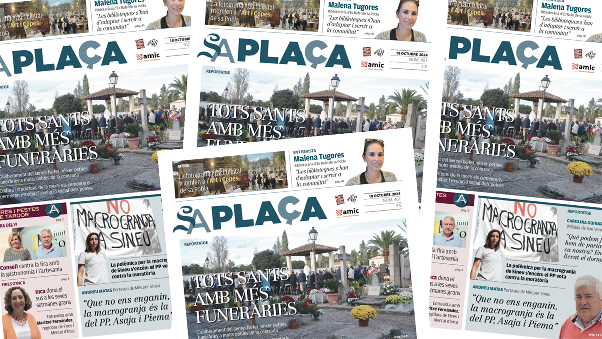 A les portes de les Fires d’Inca demà surt al carrer el nou número de la revista Sa Plaça, i duim a portada el tema de l’increment d’empreses funeràries als pobles de la contrada. De cara a Tots Sants trobareu un reportatge de la cultura de la mort i tots els actes que els ajuntaments organitzen per aquesta data, Halloween i nits de les ànimes.