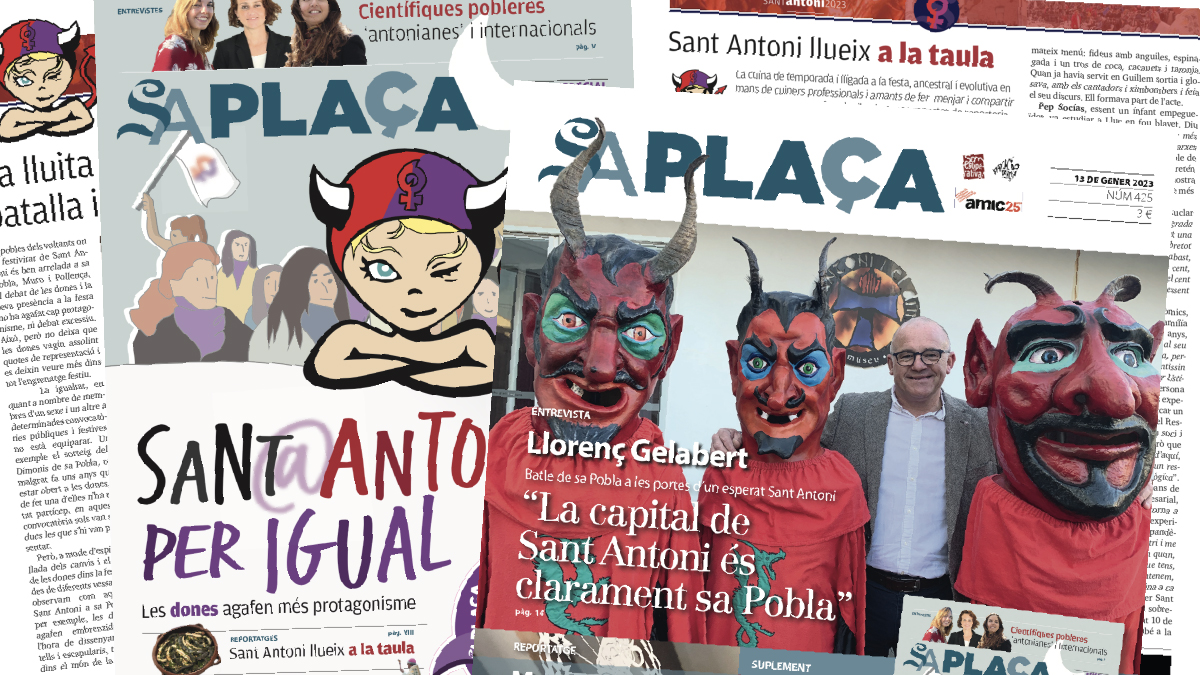 La revetlla de Sant Antoni ja és aquí, i la revista Sa Plaça, també! Ja és a tots els punts de venda la nova edició, amb un especial de 28 pàgines dedicat a la festa antoniana i l’obsequi d’un adhesiu amb el lema ‘Soc Dimonieta’.
