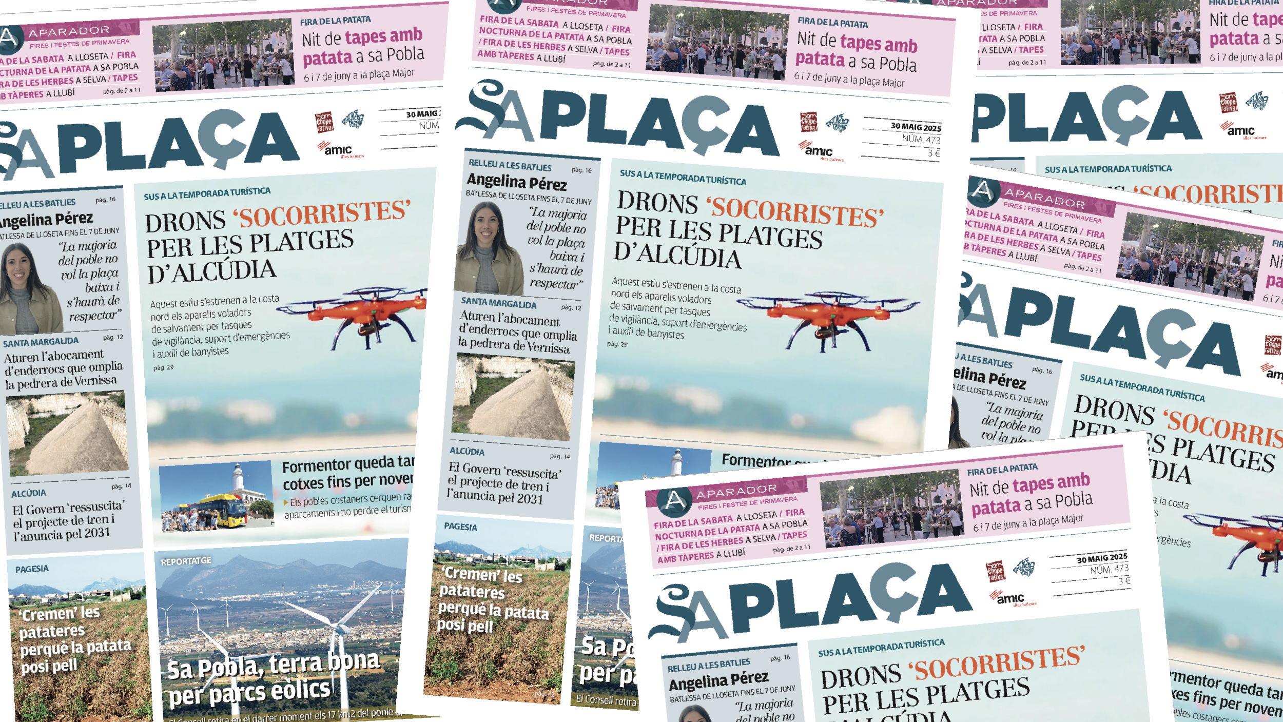 Aquest divendres surt un nou número de Sa Plaça (el 473), en el qual trobareu un reportatge dels moviments d’inici de la temporada turística. Hi ha novetats per la zona nord (més enllà d’anuncis de túnels i trens), com per exemple que les platges d’Alcúdia estrenaran drons de salvament per assistir als banyistes.