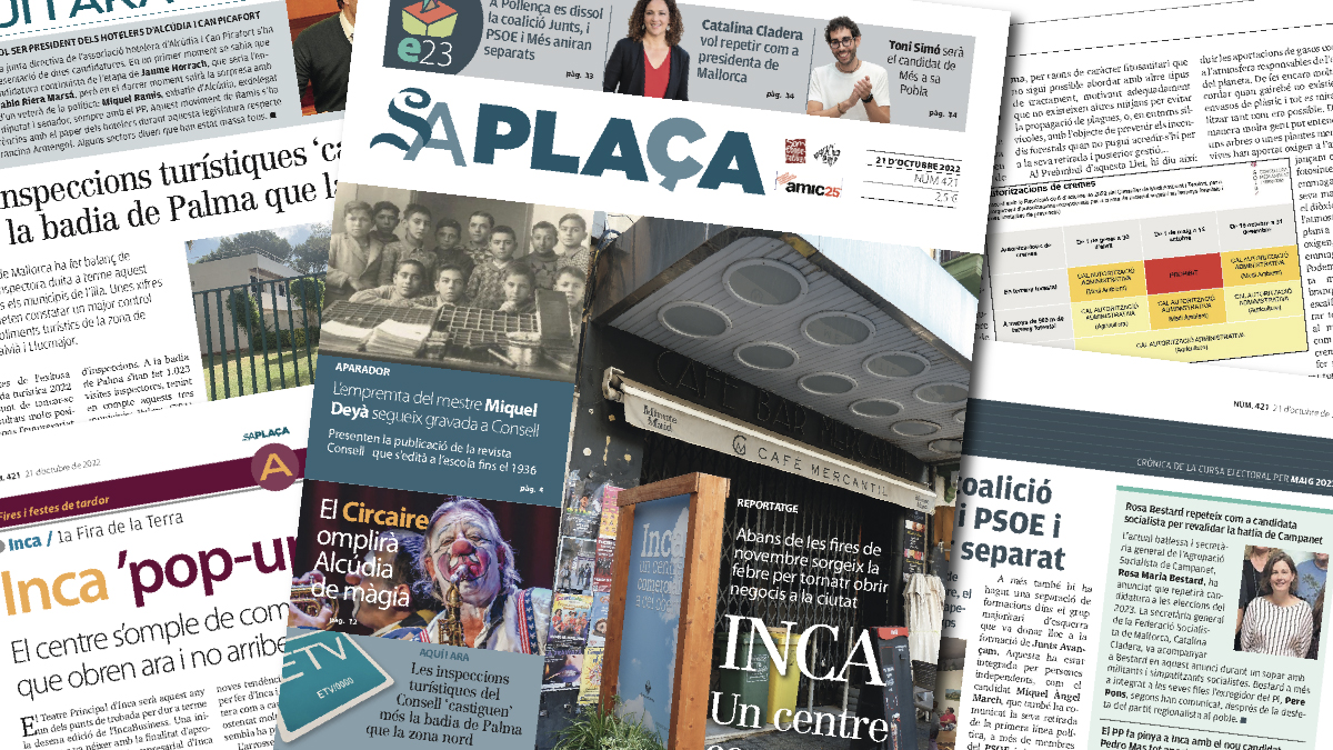 A més, a Sa Plaça núm. 421 hi ha un reportatge dedicat a l’edició impulsada per l’Ajuntament de Consell de le revista Consell que publicà el mestre Miquel Deyà al poble els anys 30 del segle passat. A l’agenda trobareu la millor informació de les fires d’Inca, i també el programa complet del Circaire d’Alcídia, que se celebra aquesta setmana que ve a Alcúdia.